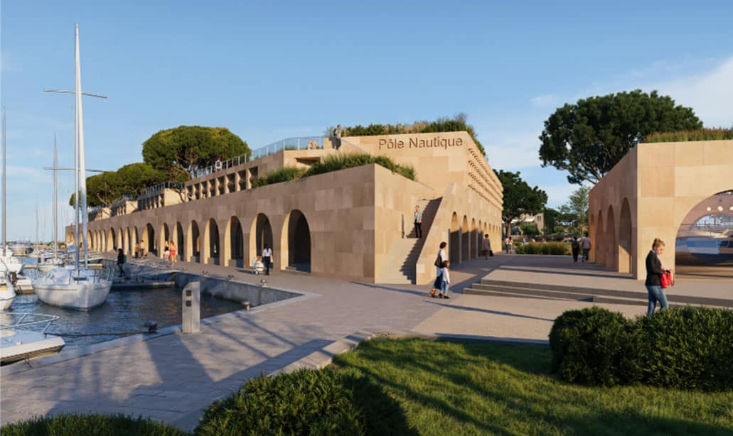 Le projet a fait l’objet d’un concours d’architecte et prévoit 1 200 m² de locaux commerciaux dédiés aux professionnels du nautisme, un parking de 272 places, un restaurant avec terrasse, des sanitaires publics et plaisanciers, un belvédère pour les promeneurs, 650 m2 de panneaux solaires,, des espaces verts au sol et en toiture.