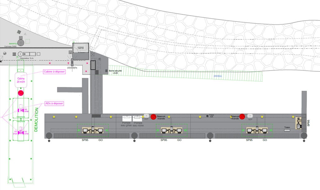 Le réaménagement prévoit l’installation de distributeurs de carburant supplémentaires, mieux positionnés pour faciliter les manoeuvres et réduire les temps d’attente en saison. Ces nouveaux équipements permettront également d’augmenter le débit de distribution. Les installations de stockage et les capacités actuelles restent elles inchangées.